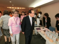 ロビーは多種のサービスを提供するため、コンサート開始の2時間前にオープン、市内3病院の認定看護師による「がん医療相談」、企業による「乳がん患者用下着」「人口乳房」「医療用ウィッグ」等の展示ほか「マッサージ」「エステ」(一般は有料、患者は無料)のサービスが提供されました。